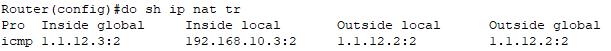 Router(config)#ip nat inside source static 192.168.10.2 1.1.12.3