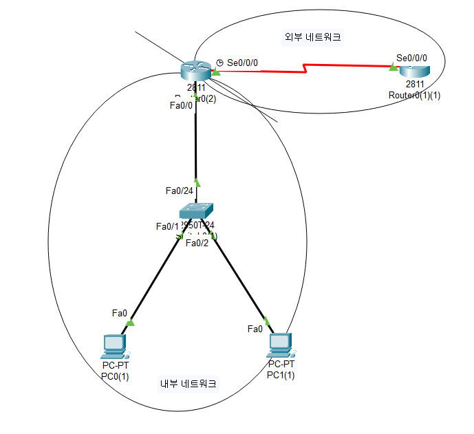 - ip nat inside : 해당 인터페이스를 내부 네트워크에 소속 → 사설 IP주소로 데이터가 수송되는 곳